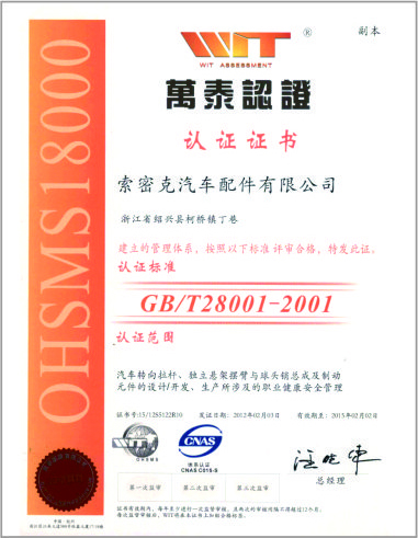 公司已先后通過IATF16949質(zhì)量管理體系認證、ISO/14001環(huán)境管理體系認證和OHSAS18001職業(yè)健康安全管理體系認證。是“國家高新技術(shù)企業(yè)”“行業(yè)龍頭企業(yè)”和“全國百家優(yōu)秀汽車零部件供應(yīng)商”。